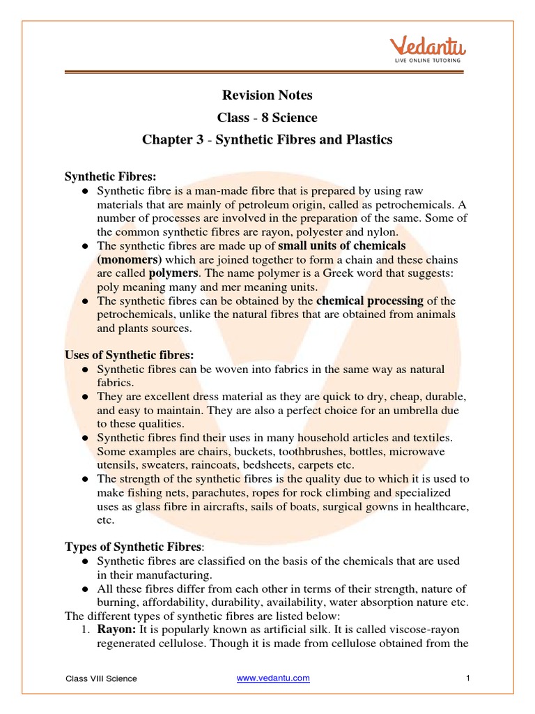 Class 8 Science Chapter 3 Revision Notes | PDF | Fibers | Synthetic Fiber