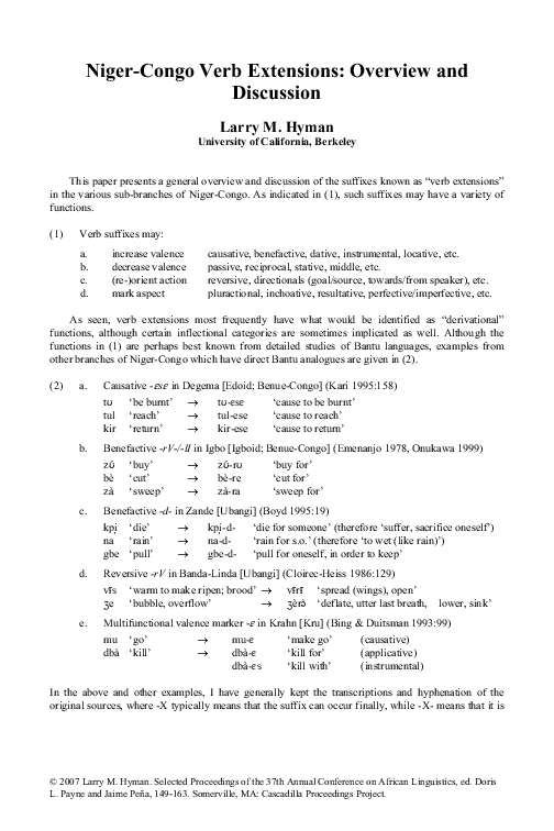 (PDF) Niger-Congo Verb Extensions: Overview and Discussion