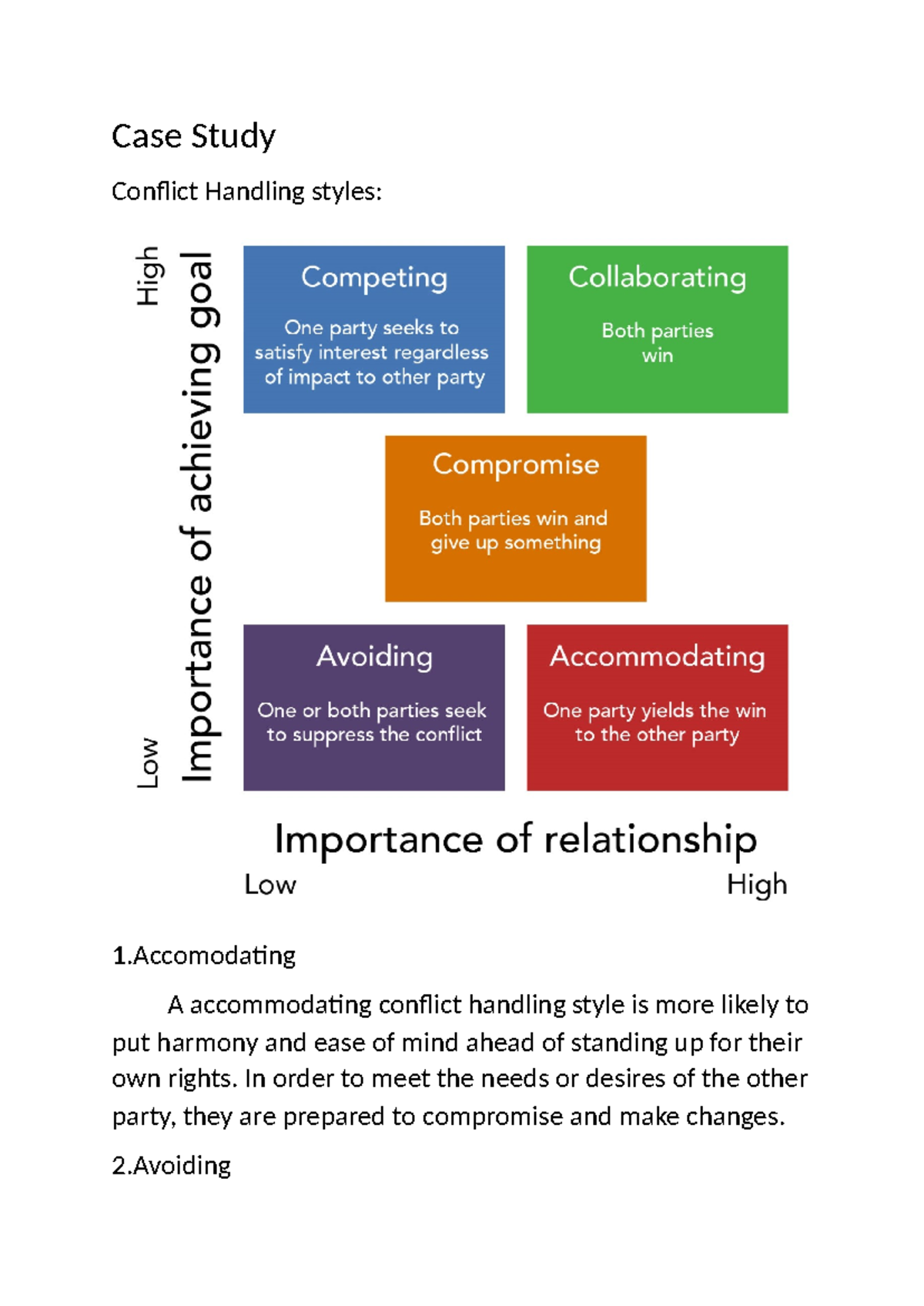 Case Study - nil - Case Study Conflict Handling styles: 1 A ...