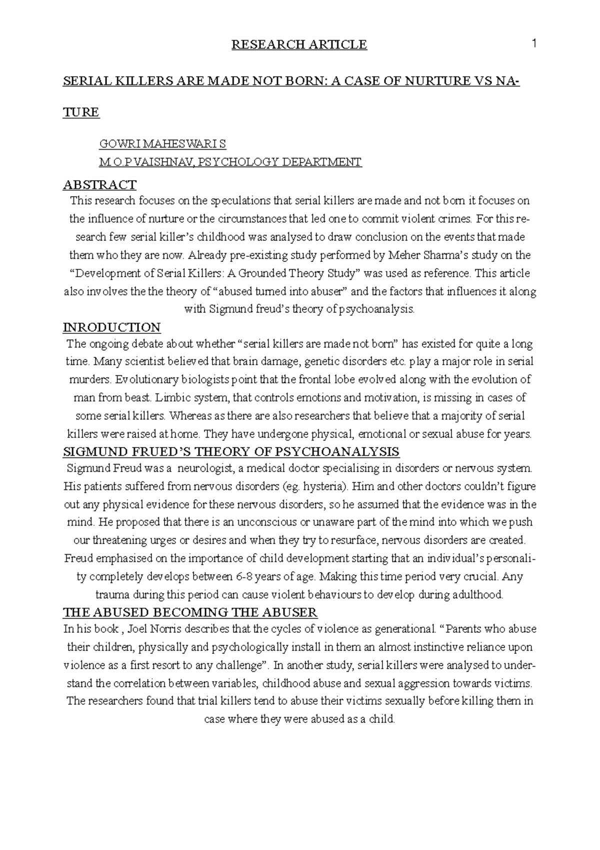 Research article - NIL - SERIAL KILLERS ARE MADE NOT BORN: A CASE OF ...