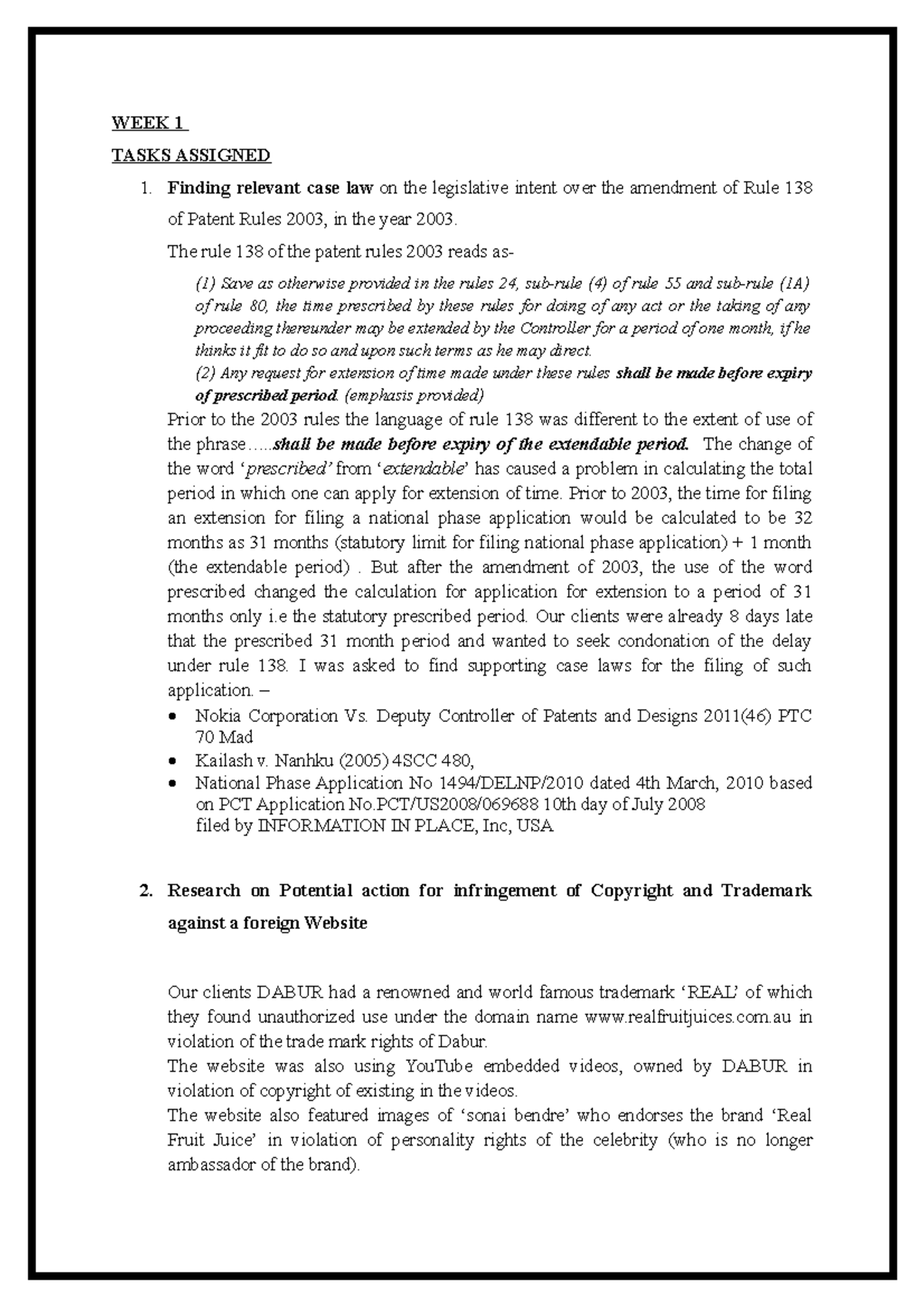 Ilide - Nil - WEEK 1 TASKS ASSIGNED 1. Finding relevant case law on the ...