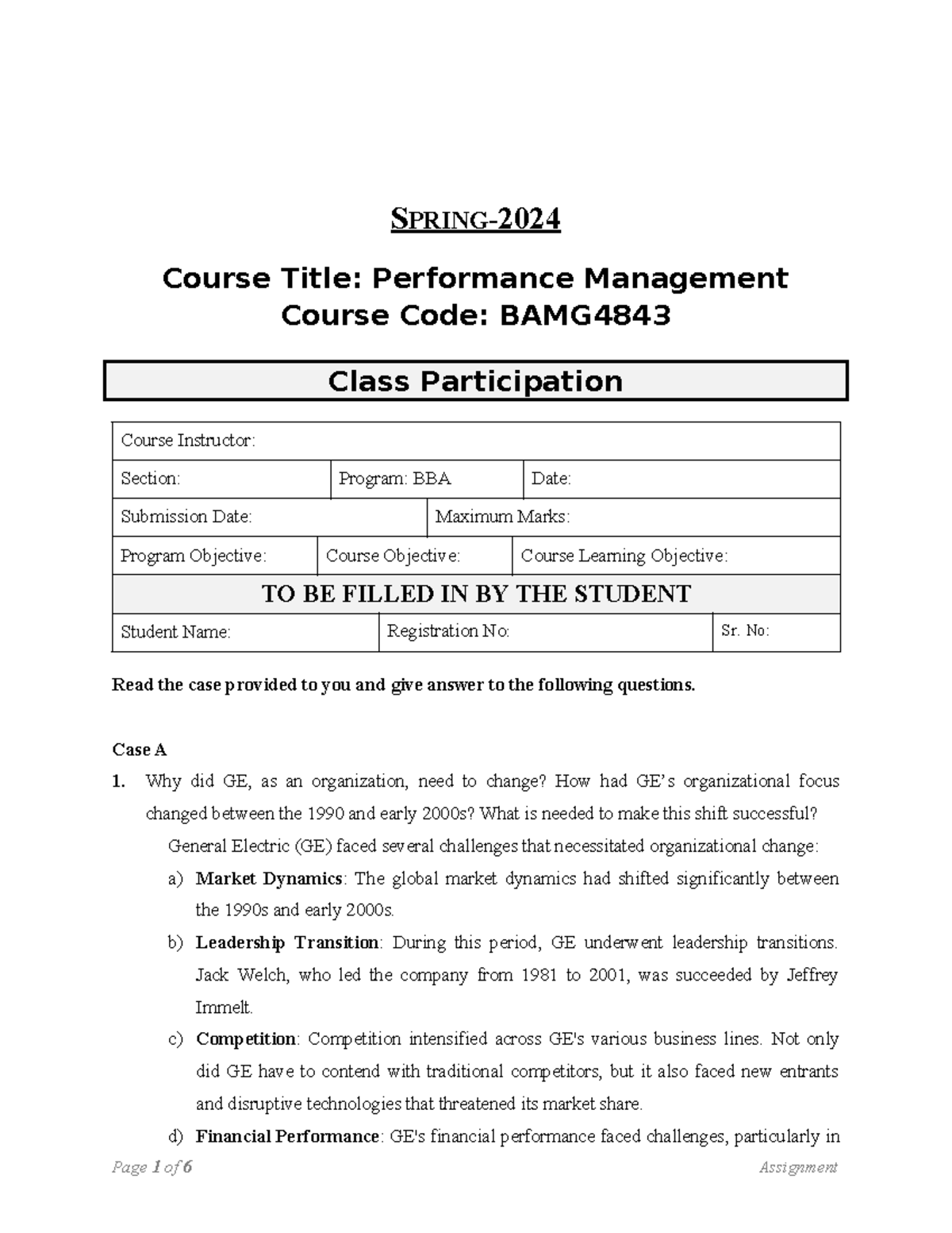 Case Study Questions - Nil - SPRING- Course Title: Performance ...