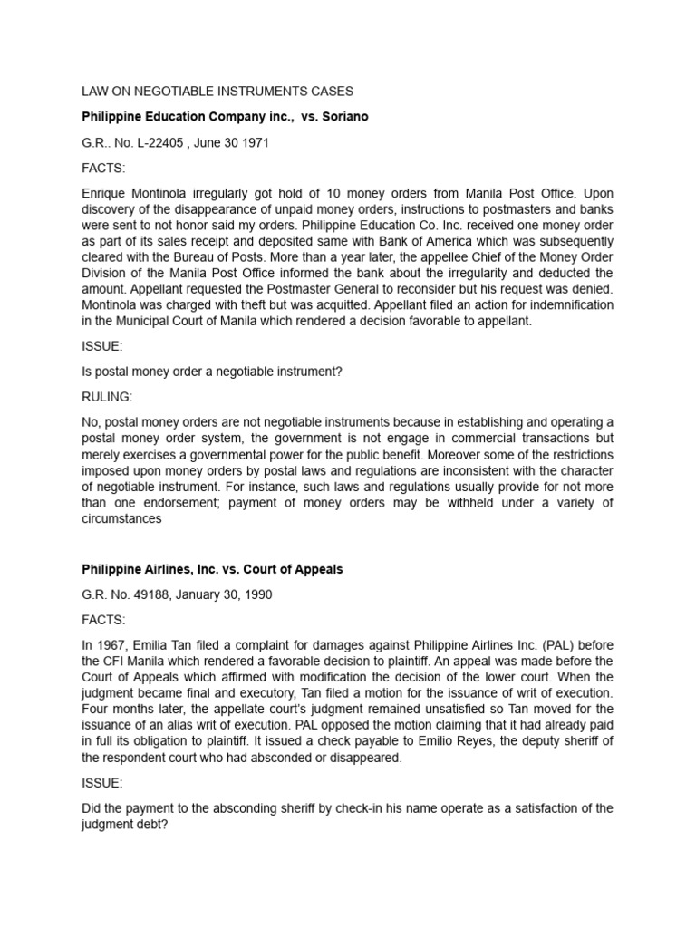 NIL Case Digests: Key Rulings and Legal Principles in Negotiable ...
