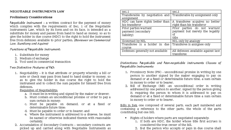 Negotiable Instruments Law (NIL) Overview and Key Concepts - Studocu