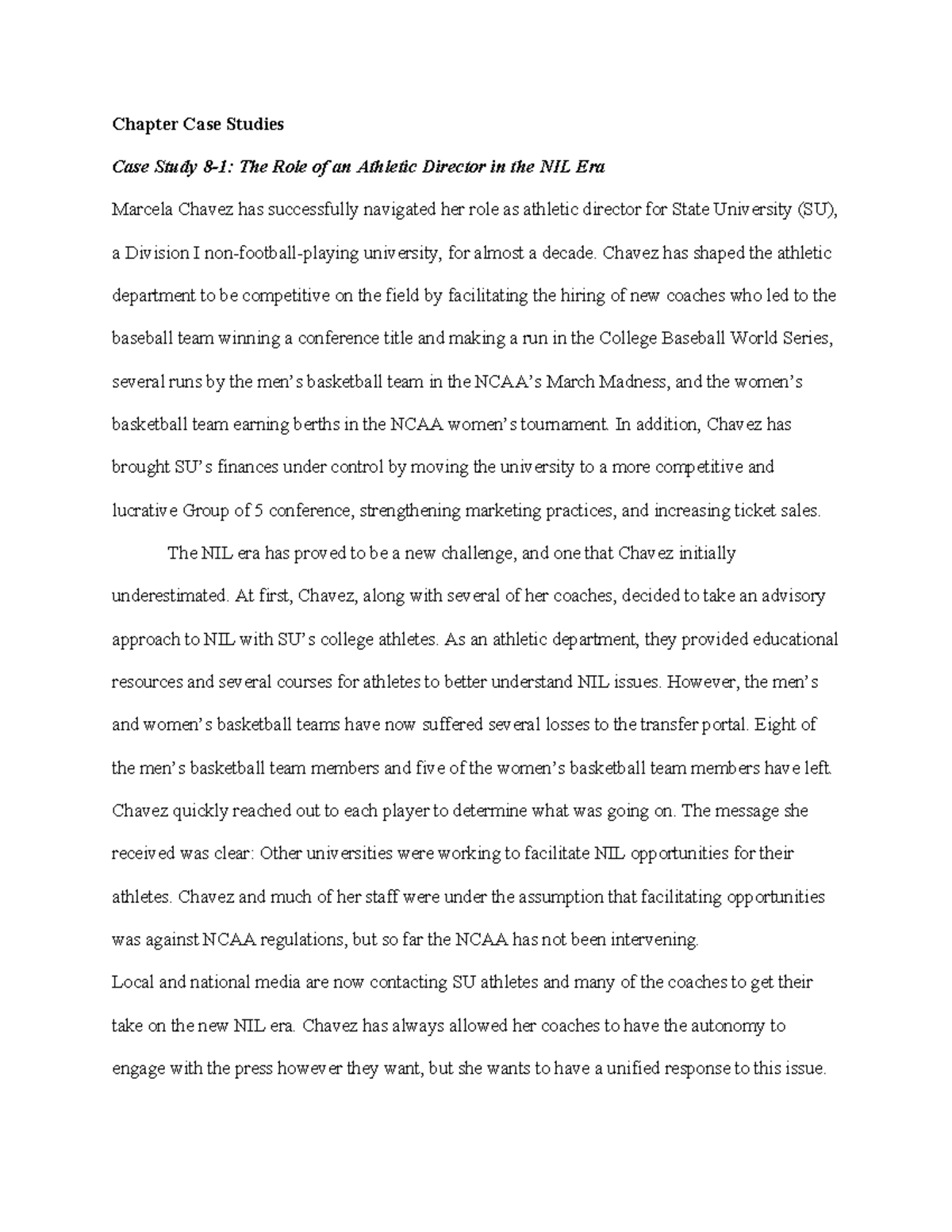 Chapter 8 Case Study: The Athletic Director's Role in the NIL Era - Studocu