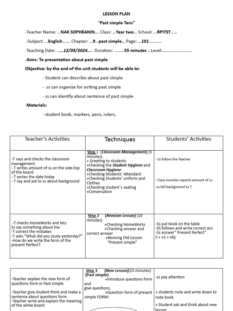 Lesson Plan For Nin | PDF | Behavior Modification | Teaching