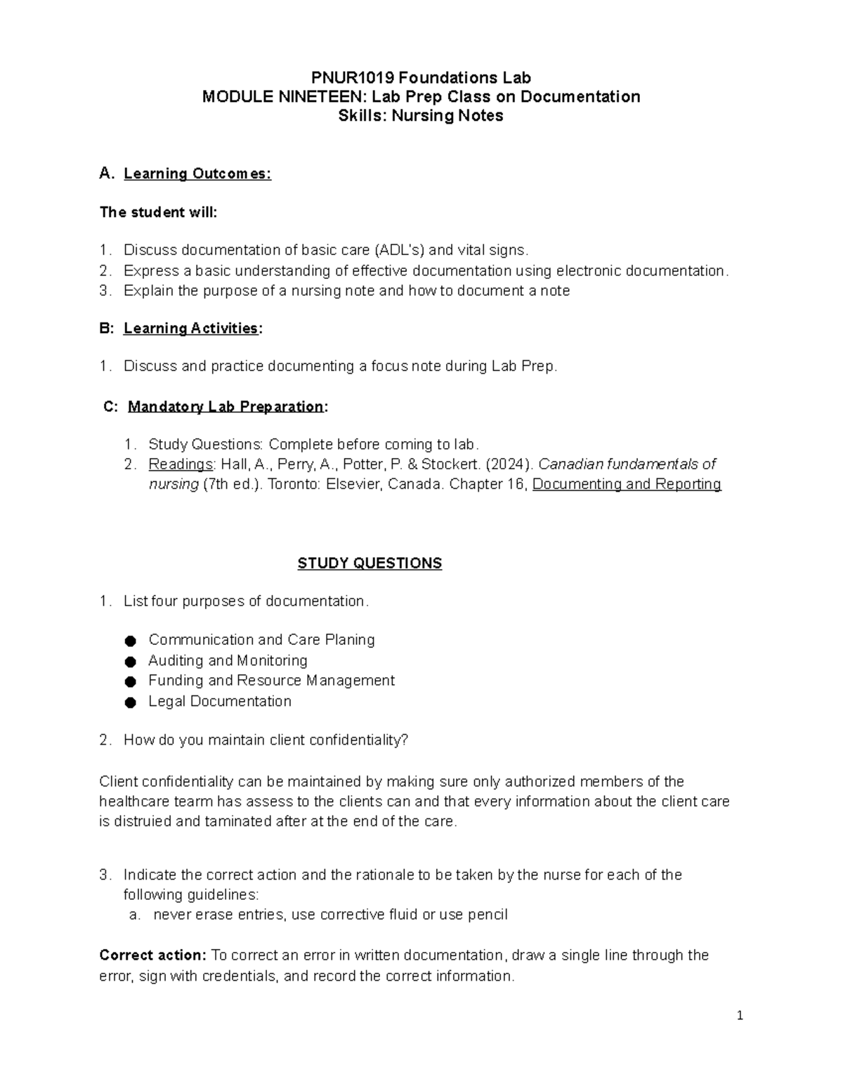 Module Nineteen Nursing Documentation Lab Prep - PNUR1019 Foundations ...