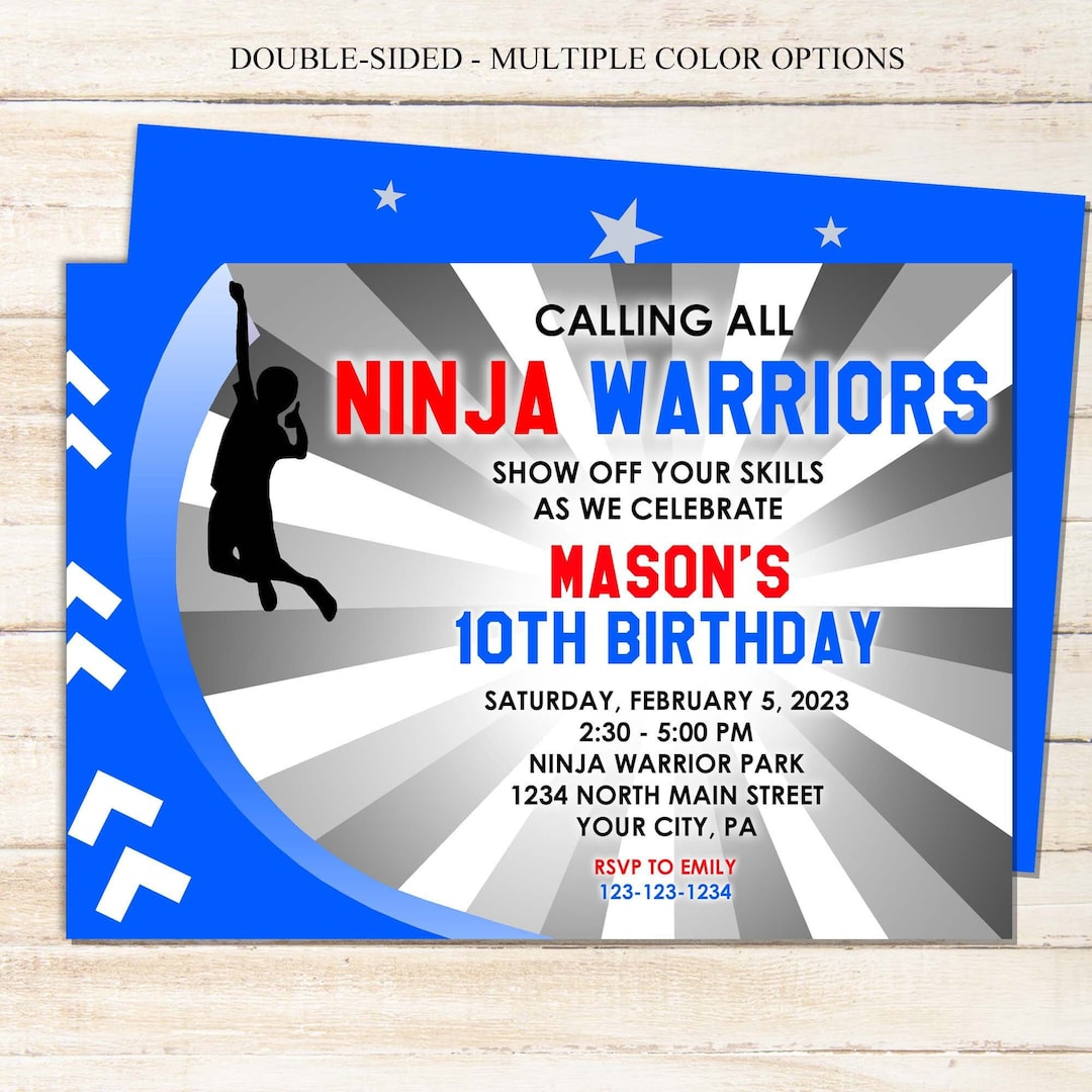 Ninja Warrior Birthday Invitation, Birthday Invitation, Ninja Warrior ...