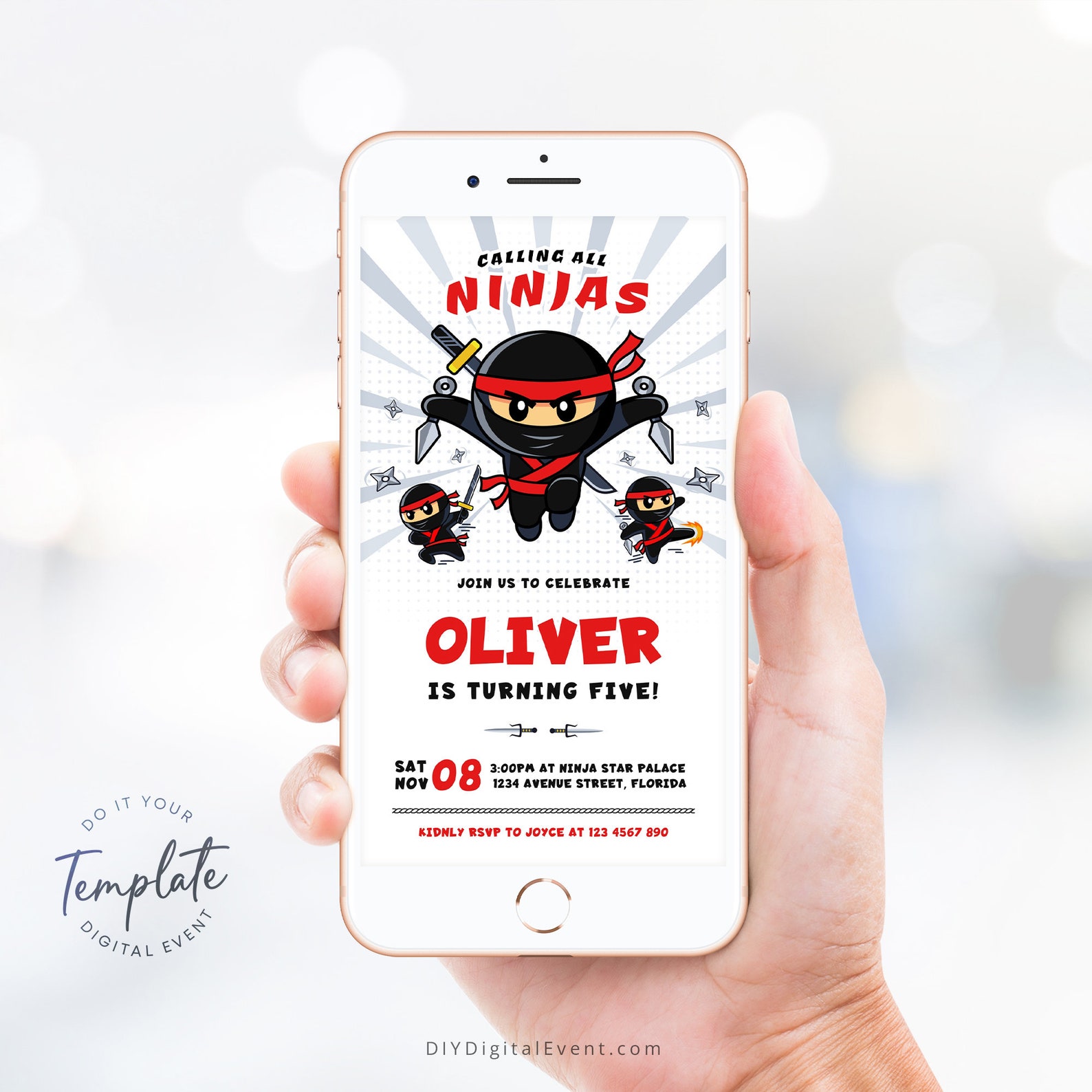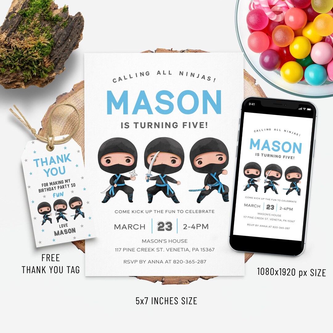 Ninja Birthday Invitation, Birthday Party Invite, Mobile Invitations ...