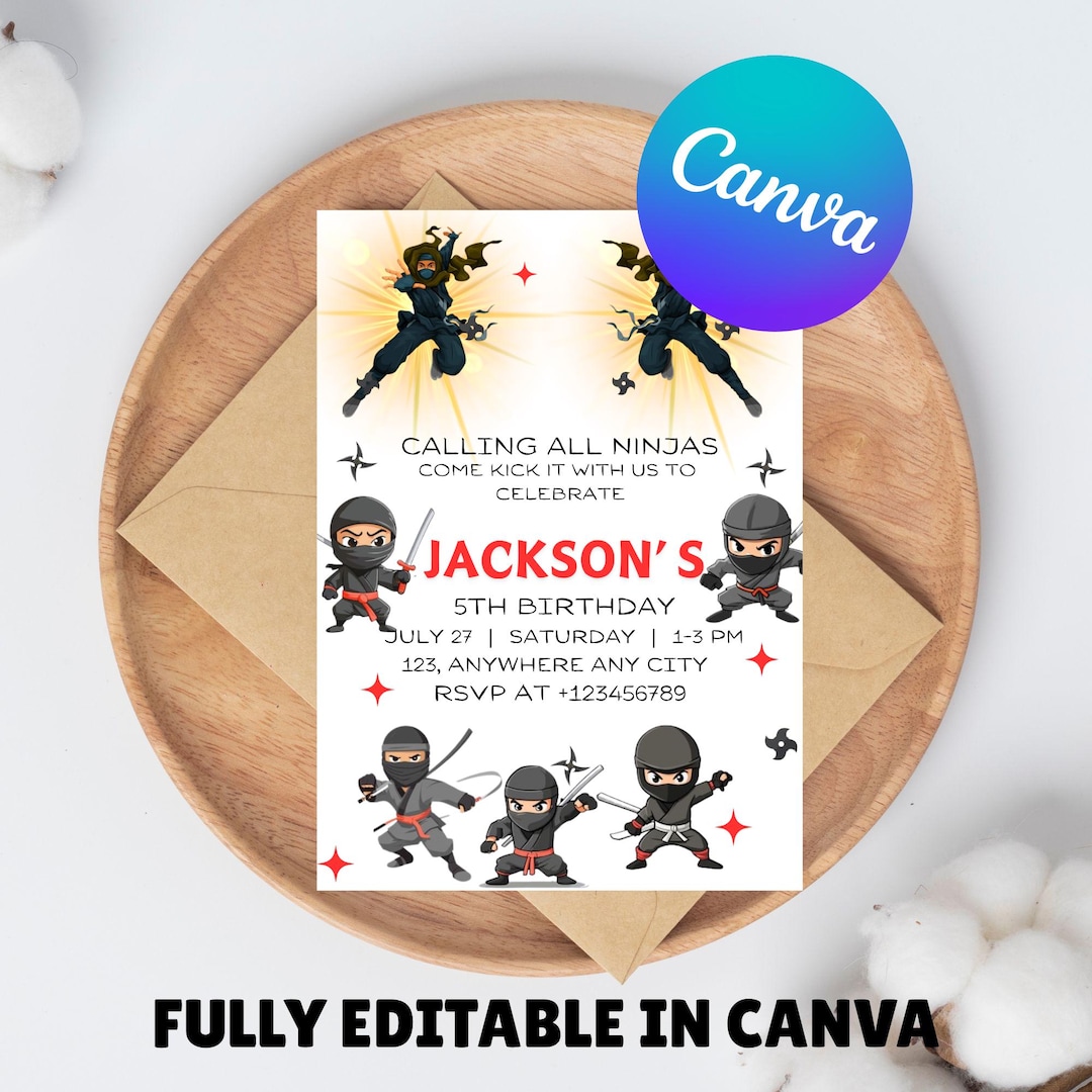 Editable Ninja Birthday Invitation Ninja Party Corjl Ninja - Etsy