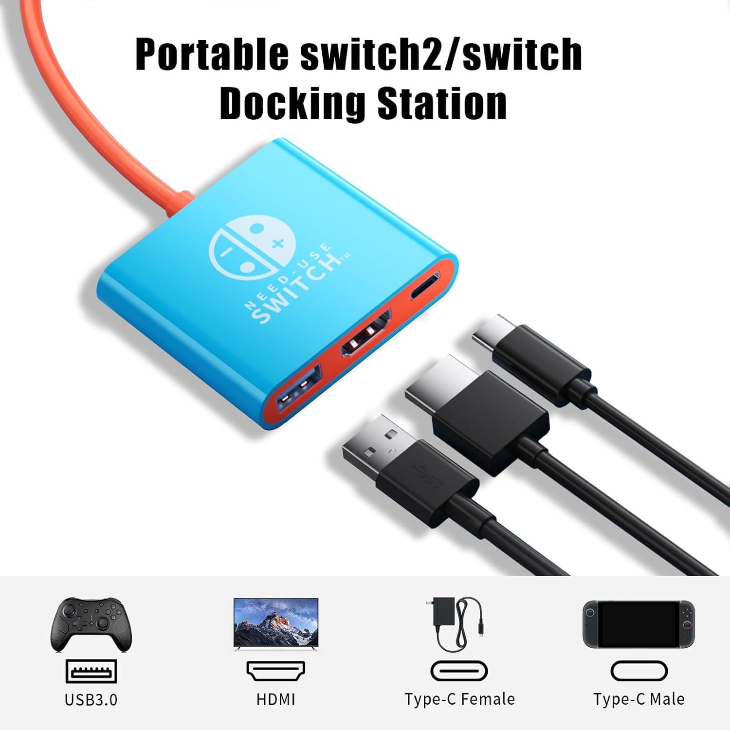 Nintendo Switch HDMI Adapter, USB-C Charging Cable, Dock Charger Port ...
