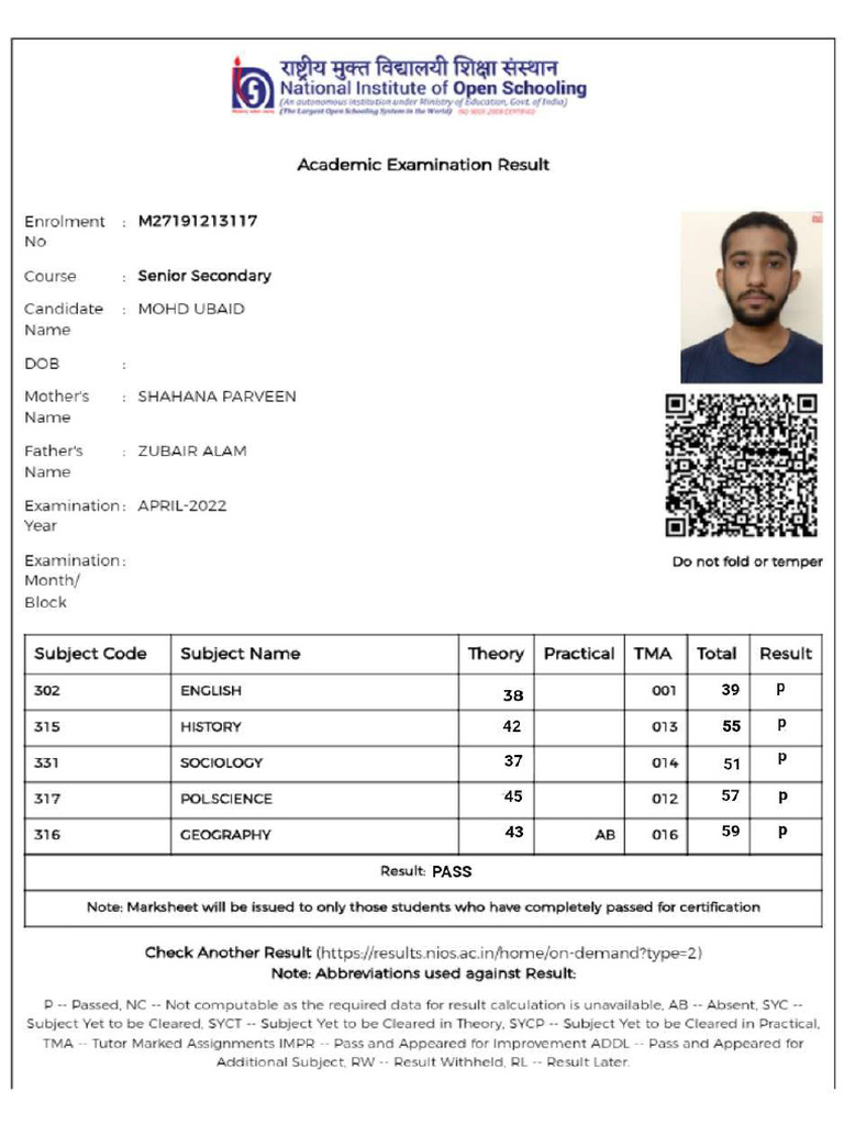 NIOS Original Marksheet & Certificate || October 2023 Pass Student's ...