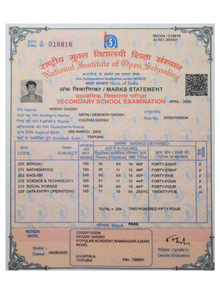NIOS Certificate/Marksheet घर बैठे मंगवाए by Speed post, Secondary/Sr ...