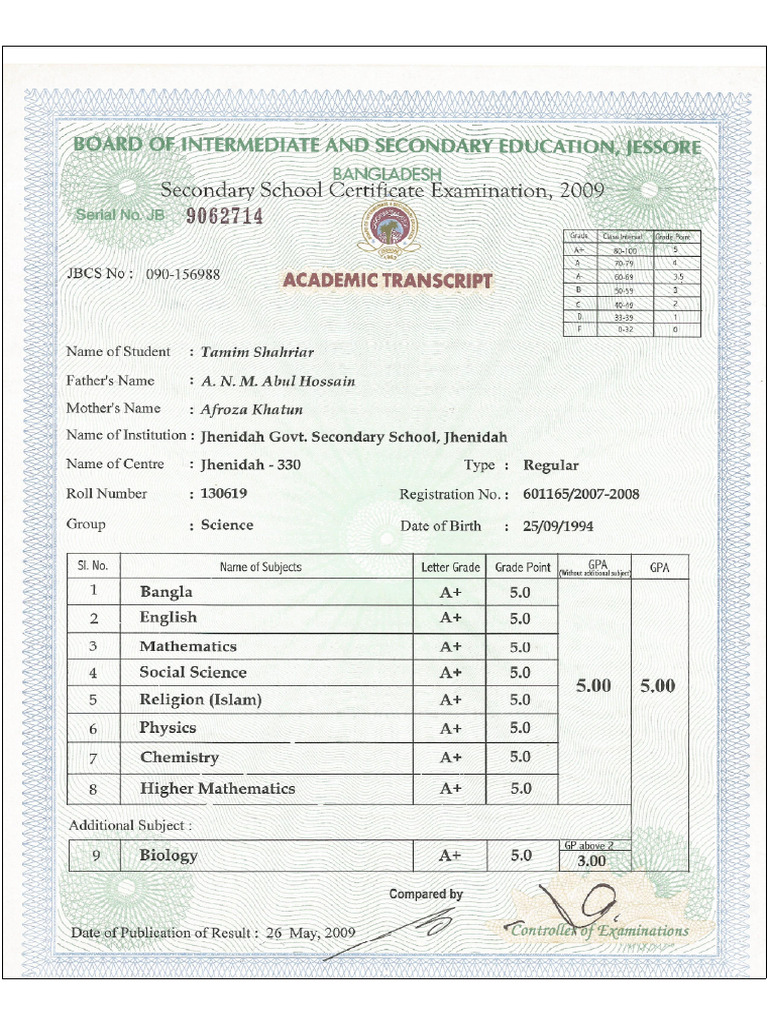 SSC Transcript - Certificate 2016 for Md. Fahim Montasir Zisan - Studocu