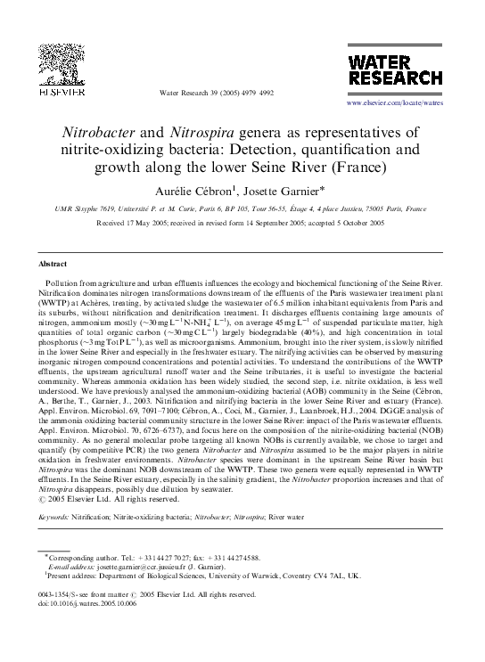 (PDF) Nitrobacter and Nitrospira genera as representatives of nitrite ...