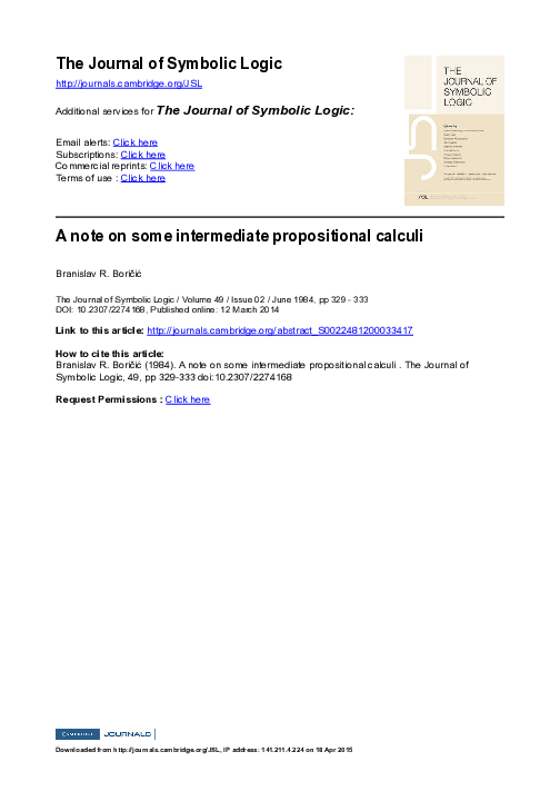 (PDF) A note on some intermediate propositional calculi