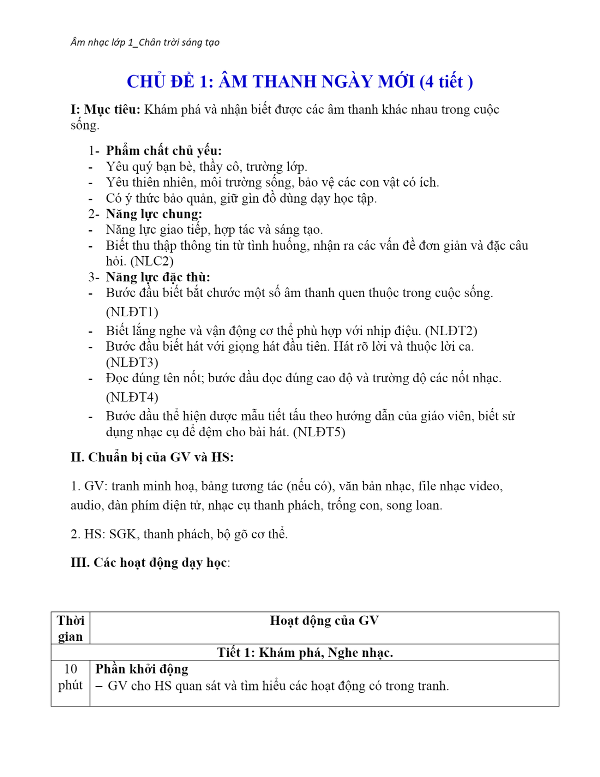 Âm Nhạc Lớp 1: Chân Trời Sáng Tạo - Khám Phá Âm Thanh Cuộc Sống (NLC2 ...