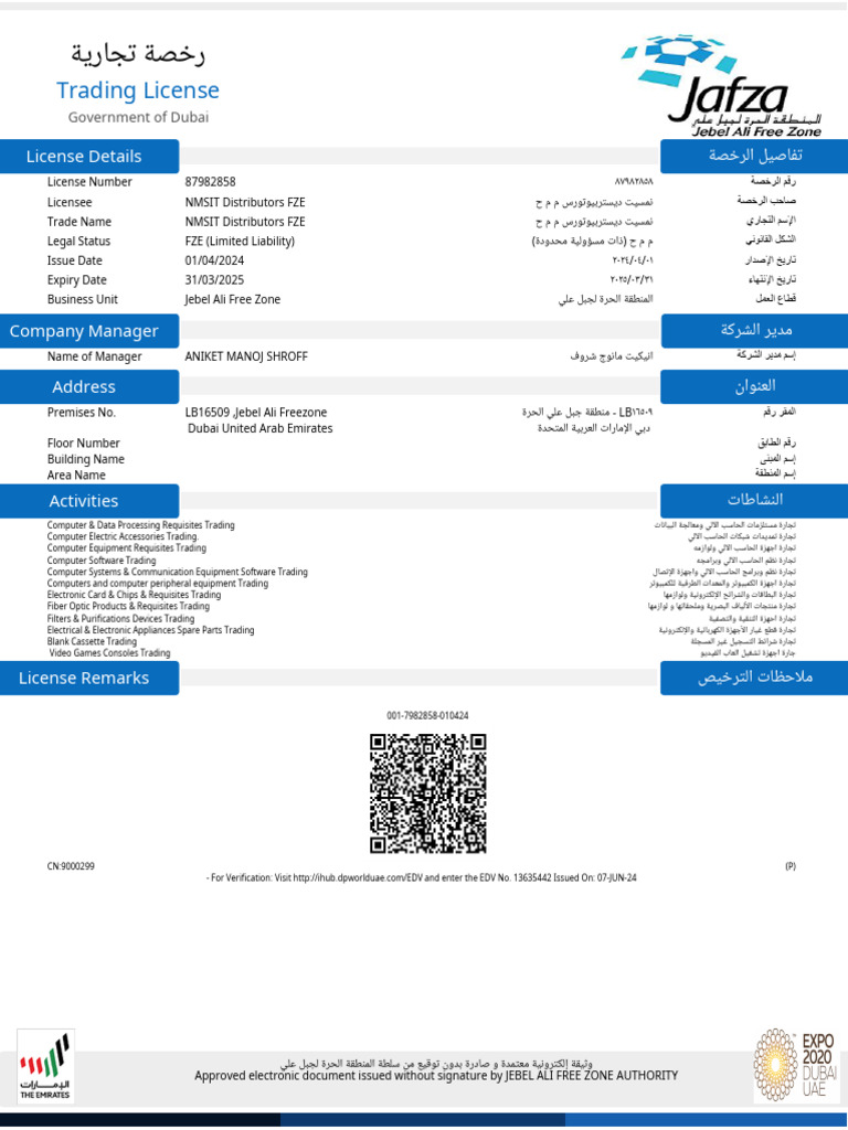 NMSIT Trade License Jafza (2) | PDF | Computing | Computer Engineering