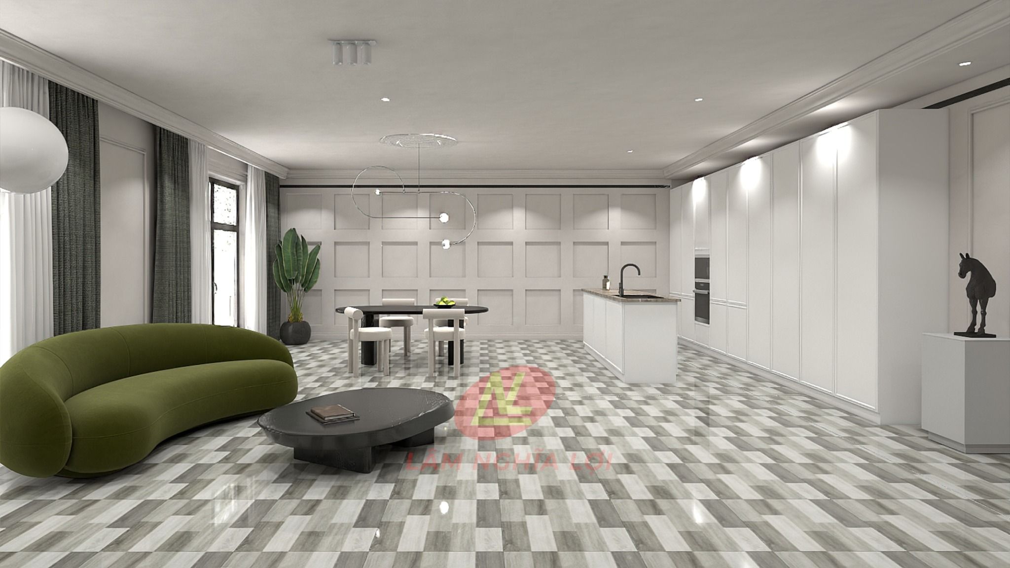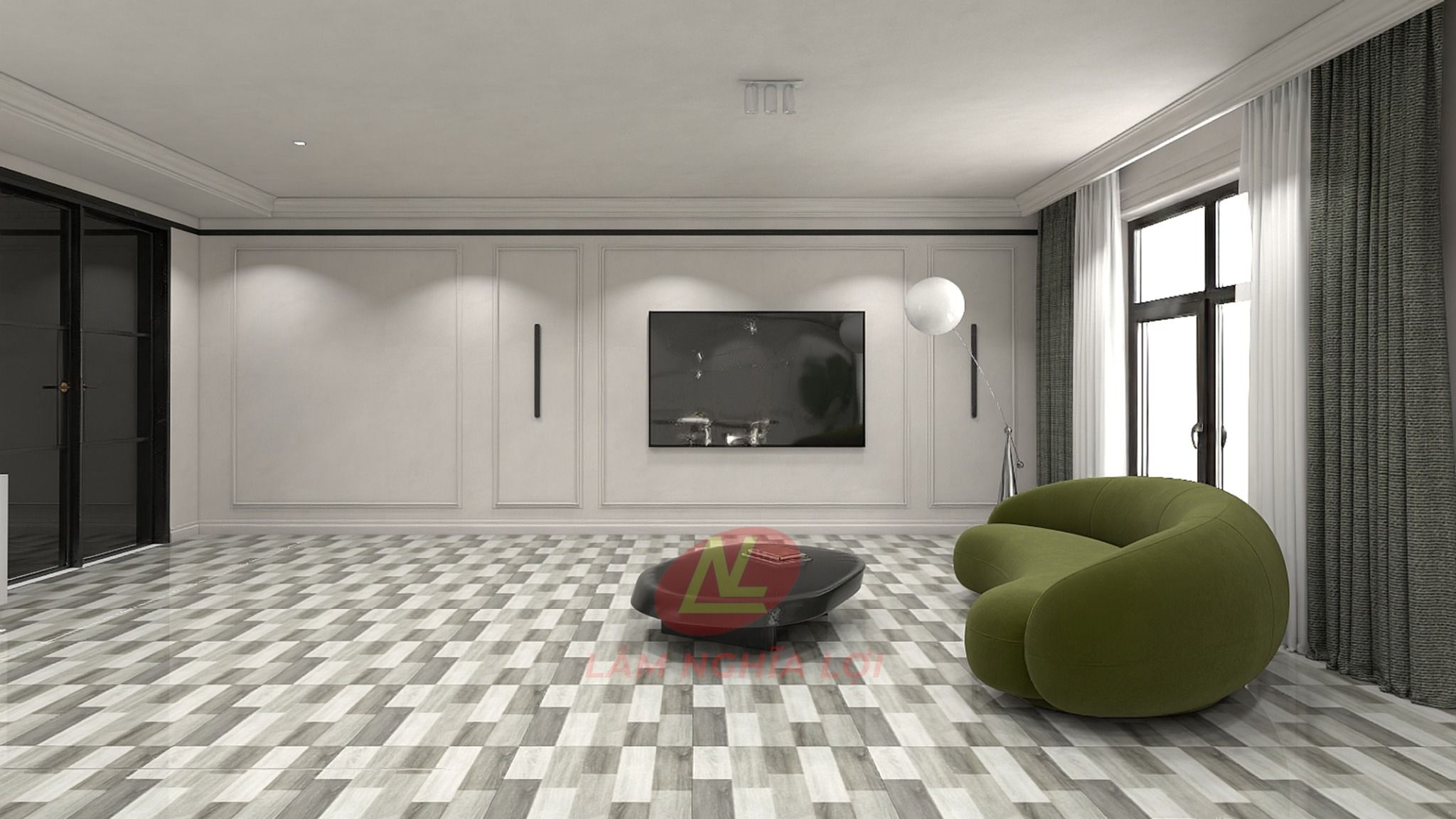 Gạch lát nền đá bóng kính vân gỗ ghép xám MK-NNDD-D - 60x60 – Trang trí ...