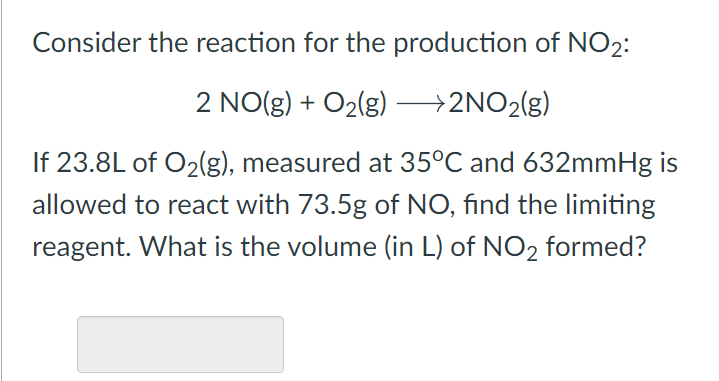 Solved The reaction of NO and O2 produces NO2. 2NO(g)+O2( | Chegg.com
