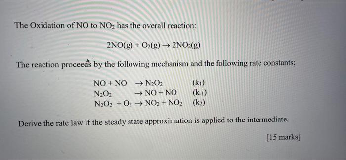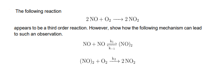 Solved Consider the following reaction mechanism NO + O2 NO3 | Chegg.com