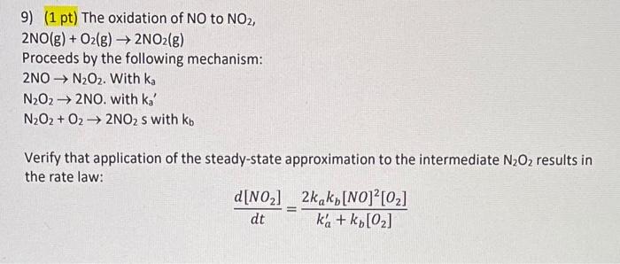 Solved 9) (1 pt) The oxidation of NO to NO2, 2NO(g)+O2( | Chegg.com