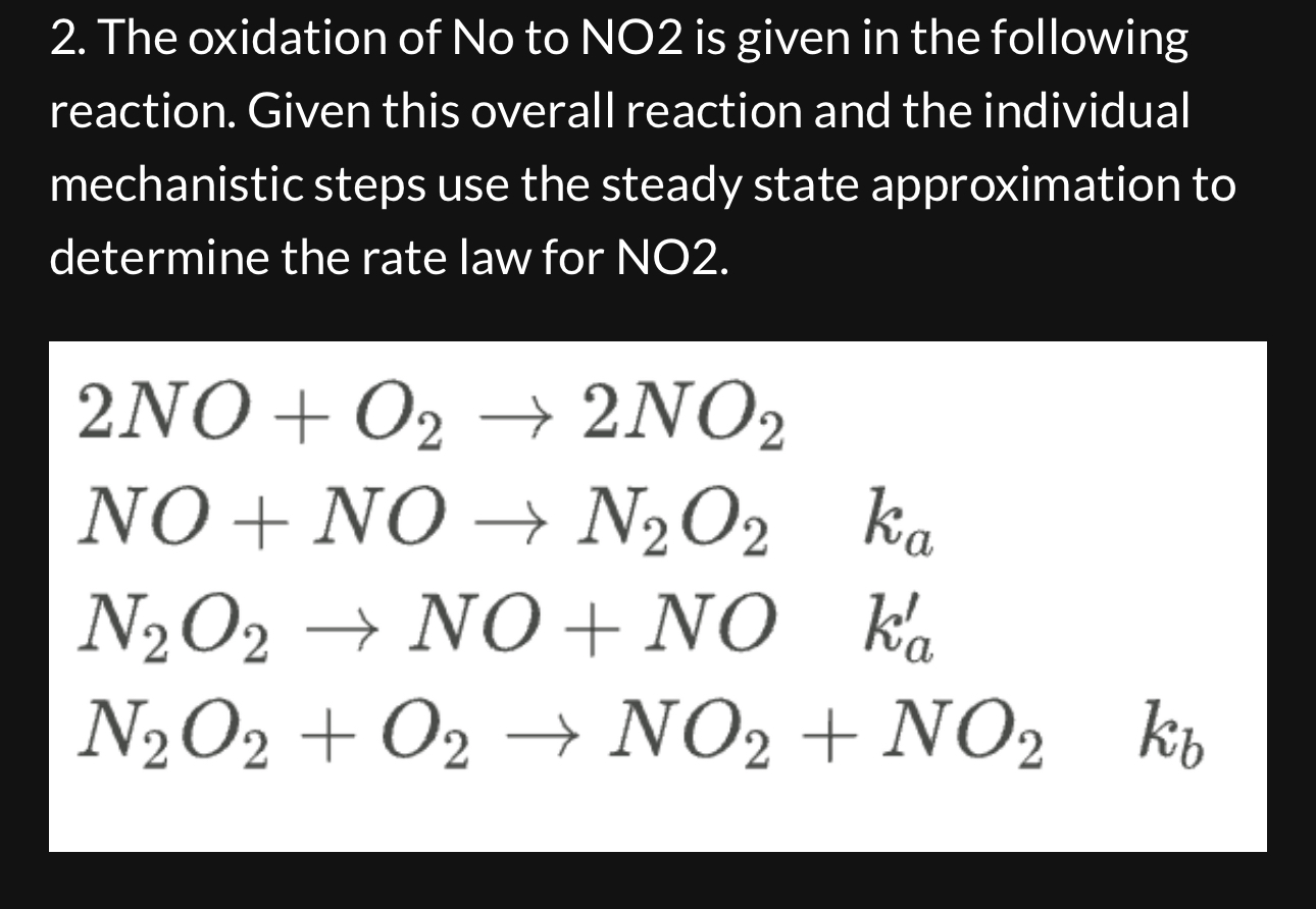 Solved .4 The reaction 2NO+O2→2NO occurs by the mechanism: | Chegg.com