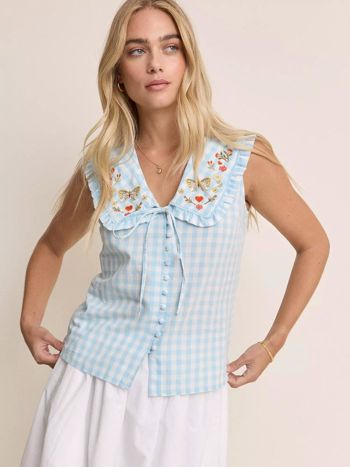 NOBODY'S CHILD Elizabeth Scarlett Birdie Sleeveless Embroidered Gingham ...