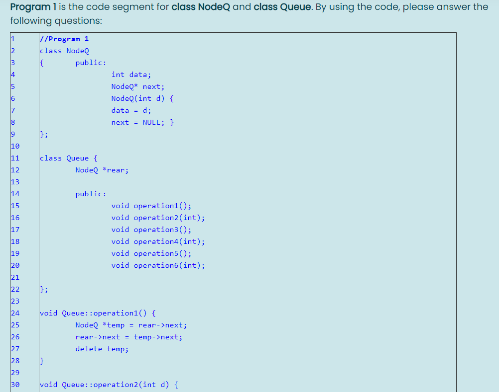 Solved Program 1 is the code segment for class NodeQ and | Chegg.com