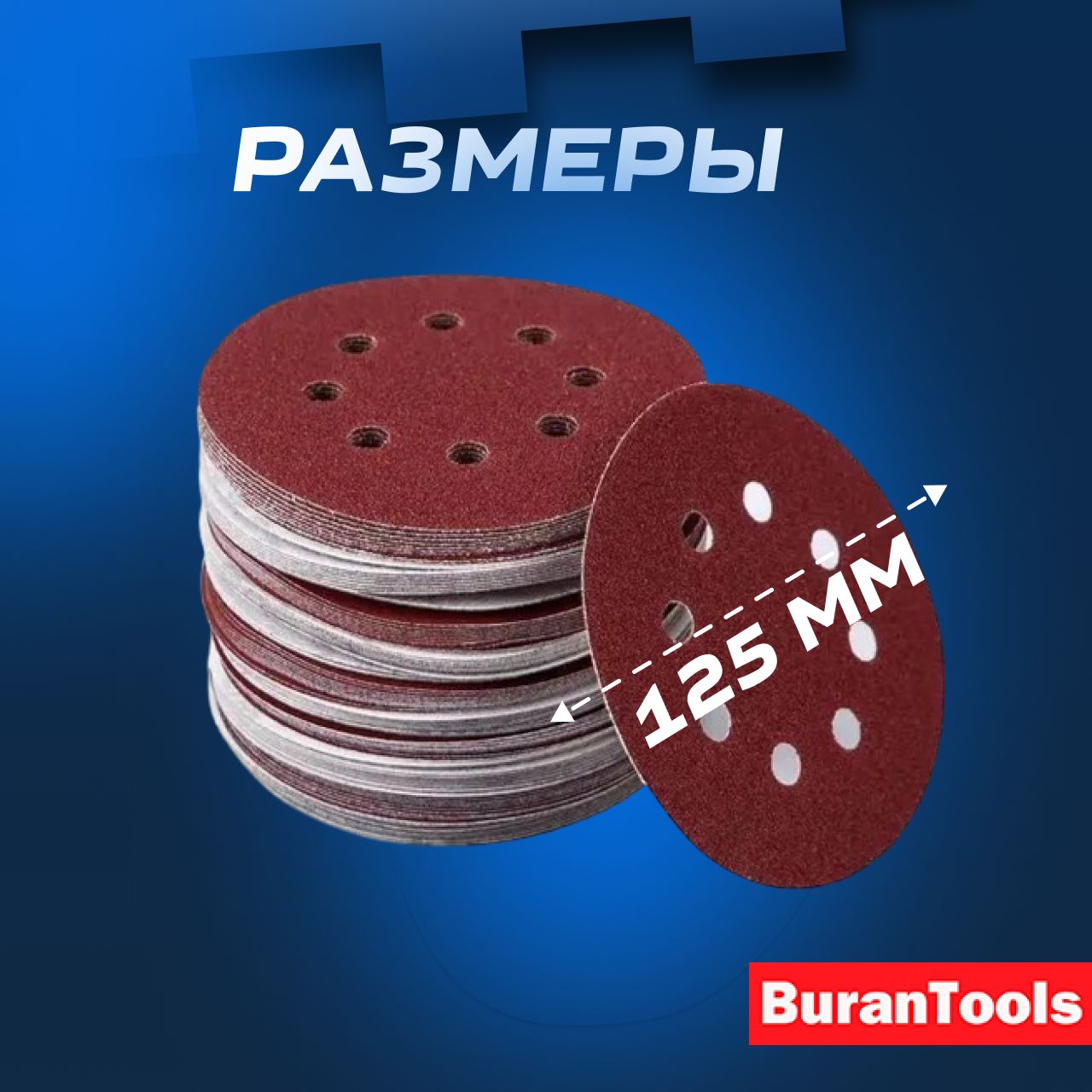 Шлифовальные круги 125мм на липучке Р60 100шт / Диск шлифовальный с ...