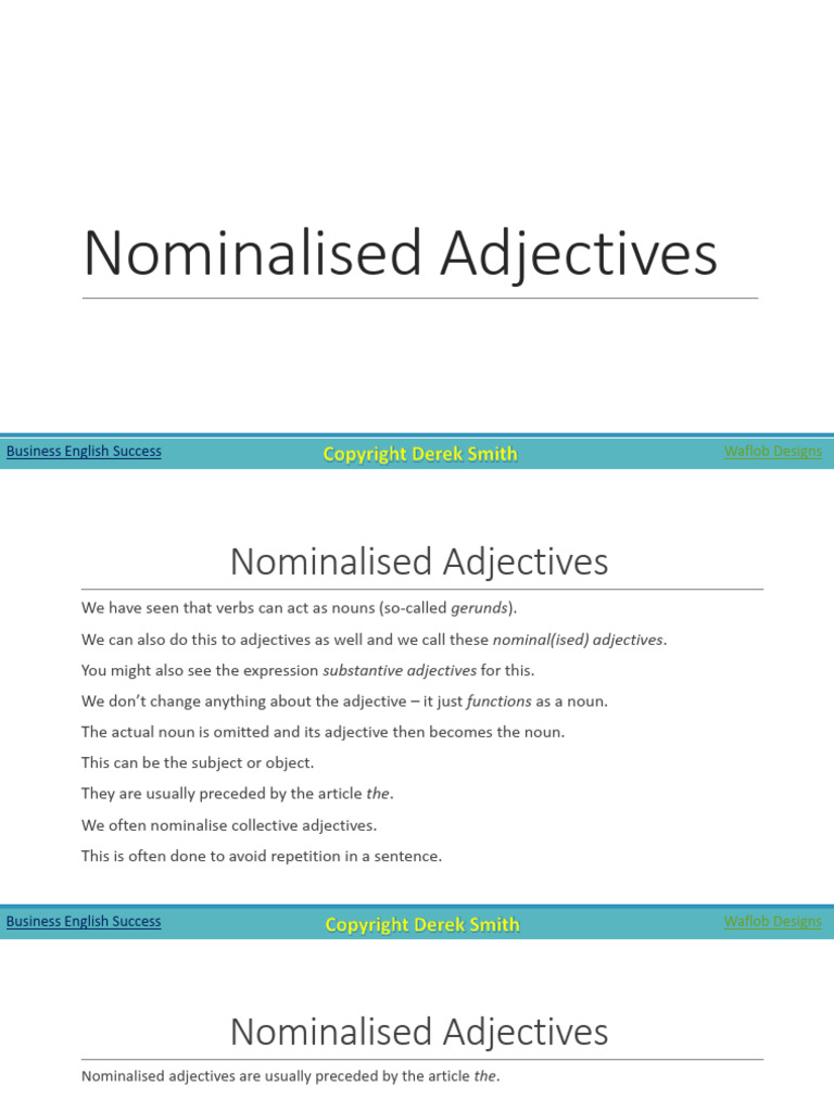 Nominalised Adjectives | PDF | Adjective | Noun