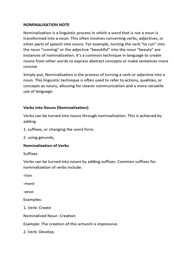 Nominalization: Transforming Words to Nouns | PDF | Noun | Verb