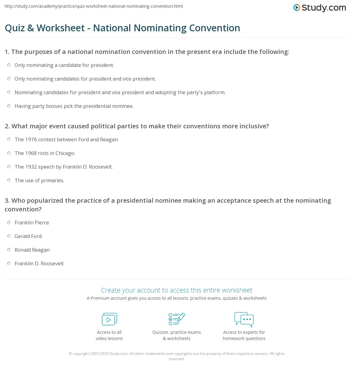 Quiz & Worksheet - National Nominating Convention | Study.com