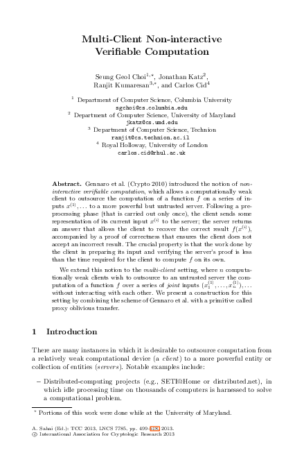(PDF) Multi-Client Non-interactive Verifiable Computation