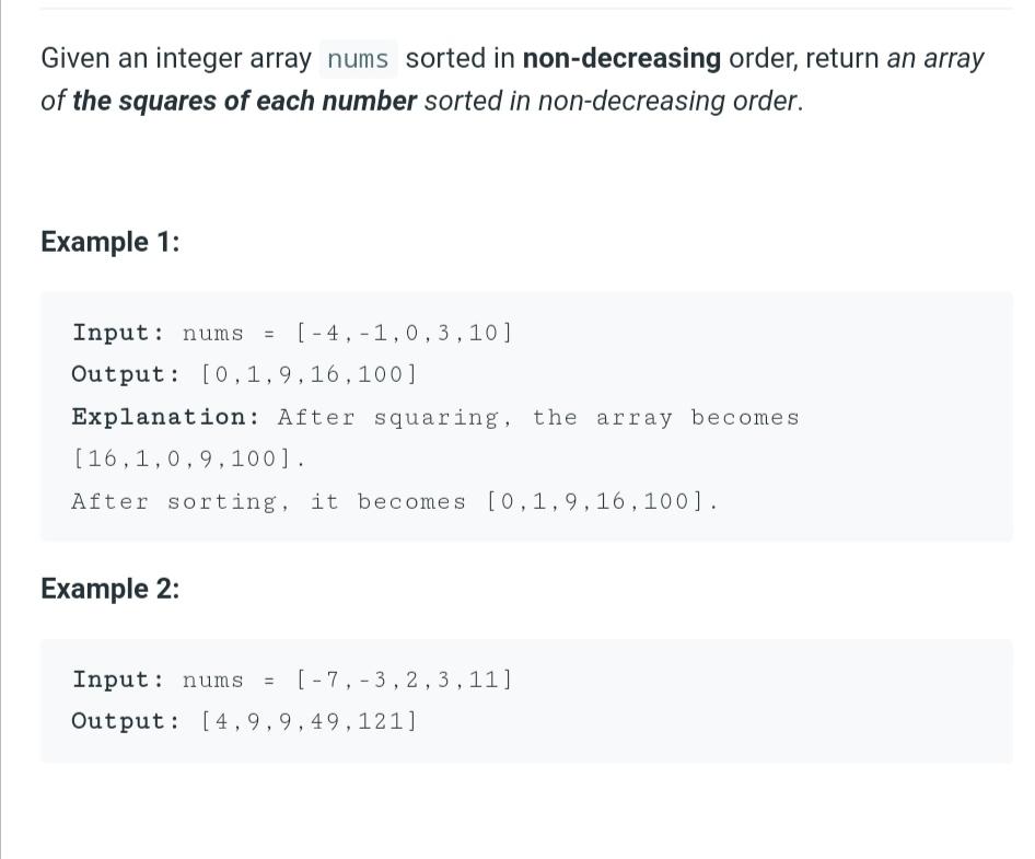 Sorted Squared Array. Given an integer array nums sorted in… | by Devi ...
