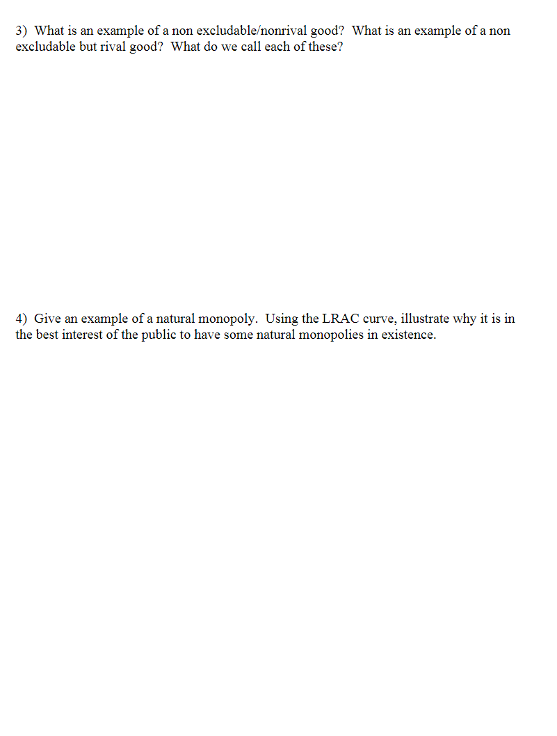 Solved 3) What is an example of a non excludable/nonrival | Chegg.com
