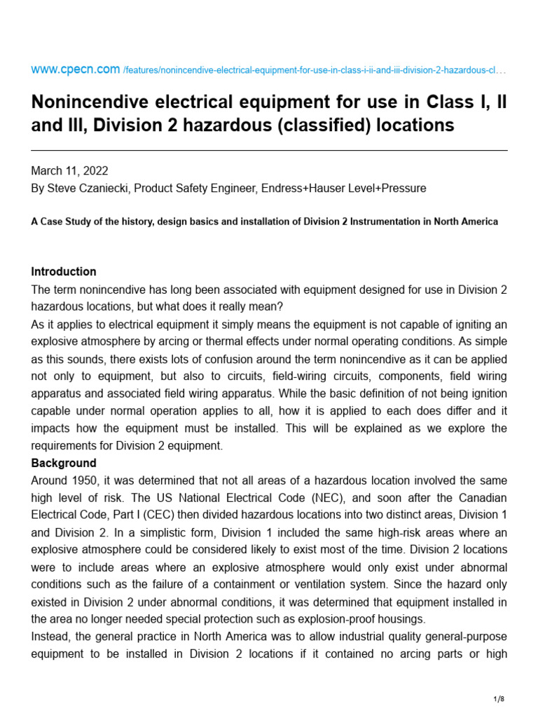 Nonincendive Equipment For Use in Hazardous (Classified) Locations IAEI ...