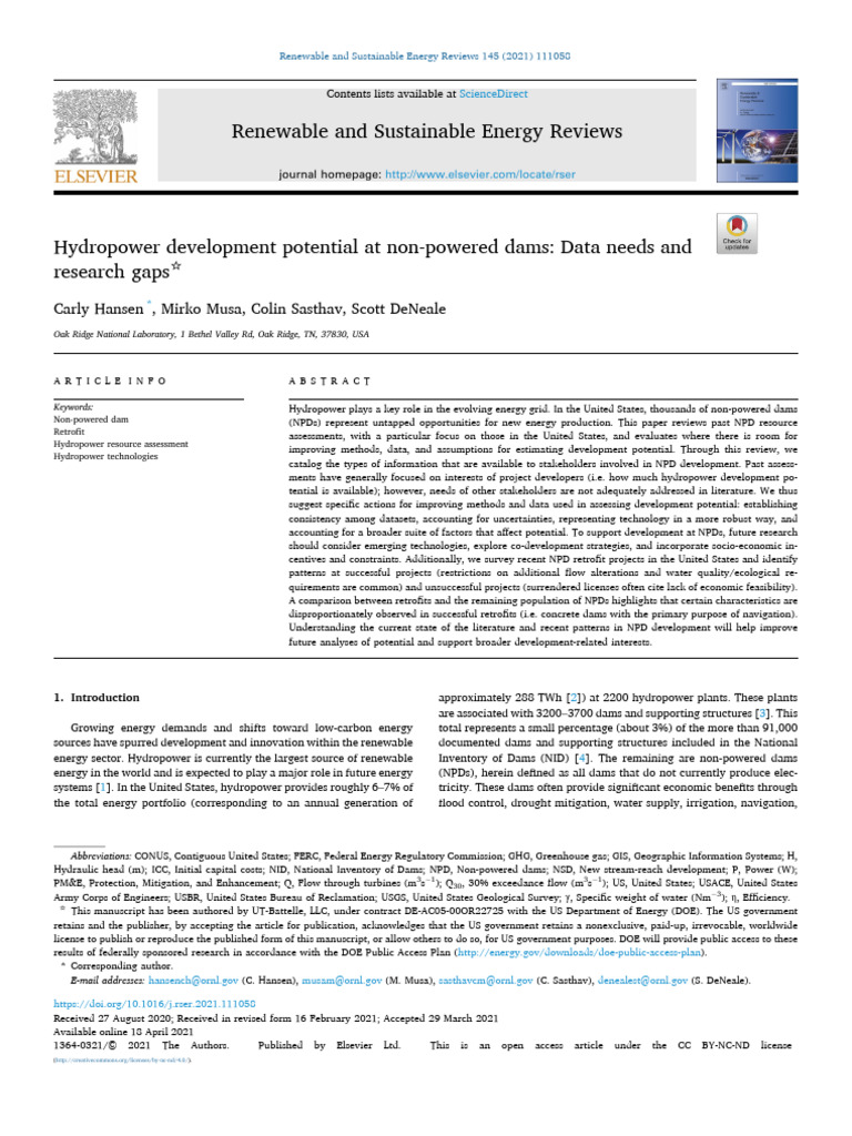 Hydropower Potential at Non-Powered Dams | PDF | Hydroelectricity | Dam