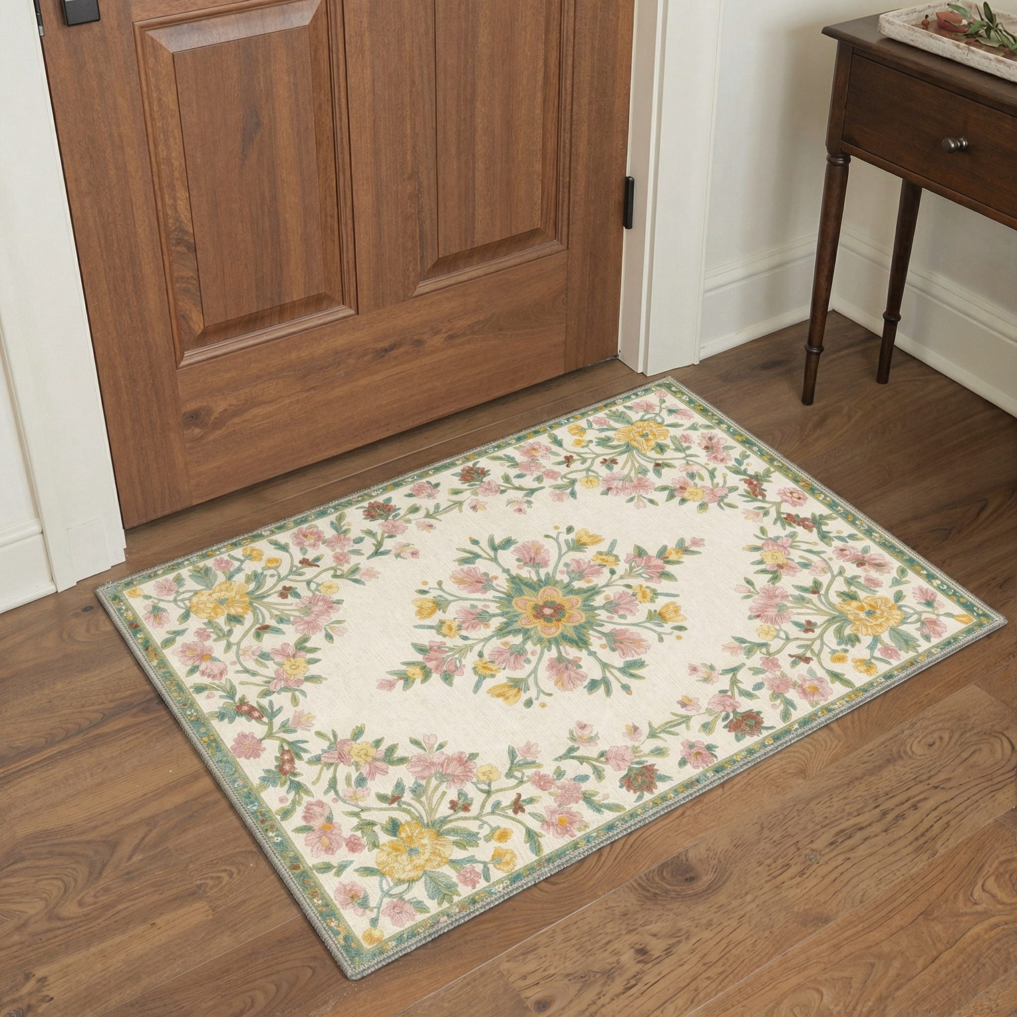 2x7 Area Rugs Non Slip Washable Low Pile Indoor Runner, Garden Floral ...
