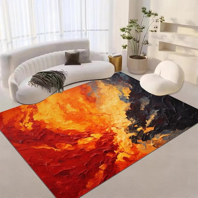 Abstract Burning Flame 3D Print Pattern Rug, Red Black Background Area ...