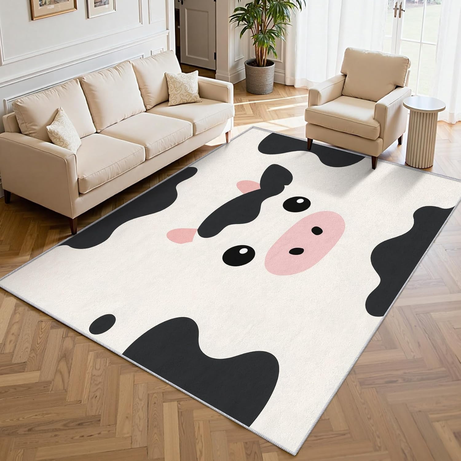 Cartoon Cow Print Area Rug, Cute Animal Pattern Carpet, Washable Non ...
