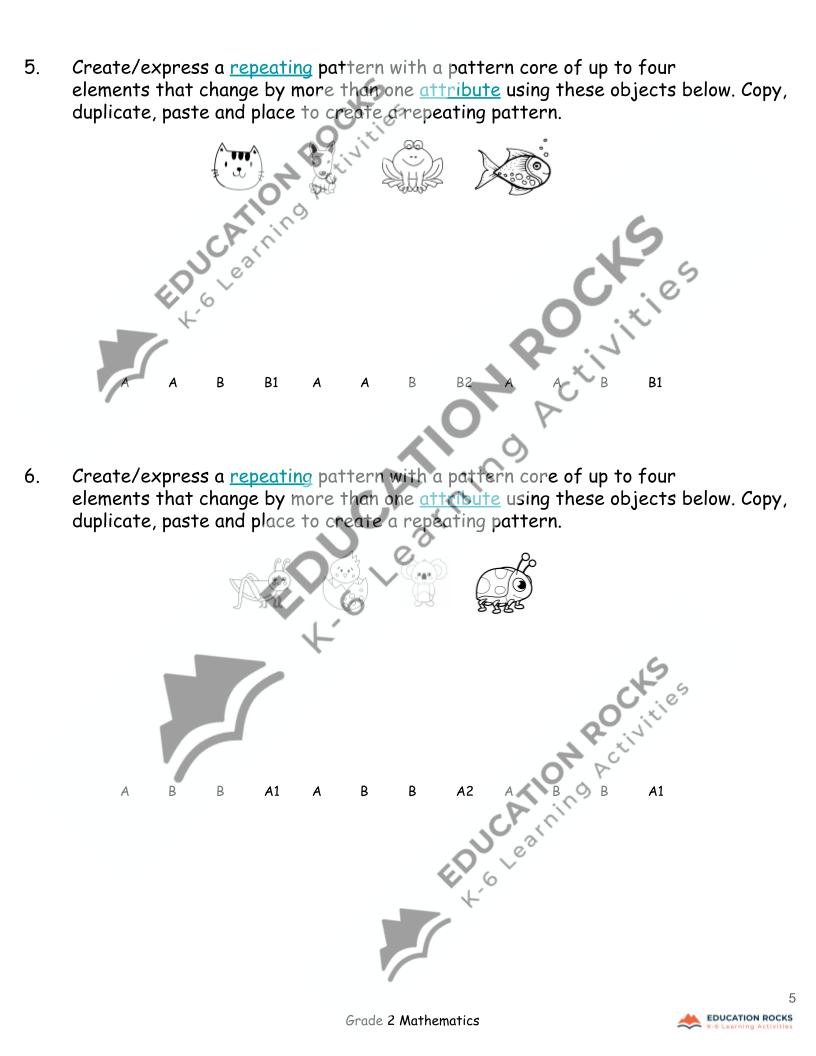 Grade 2 Math Alberta: Non-Repeating Patterns by Education Rocks Inc.