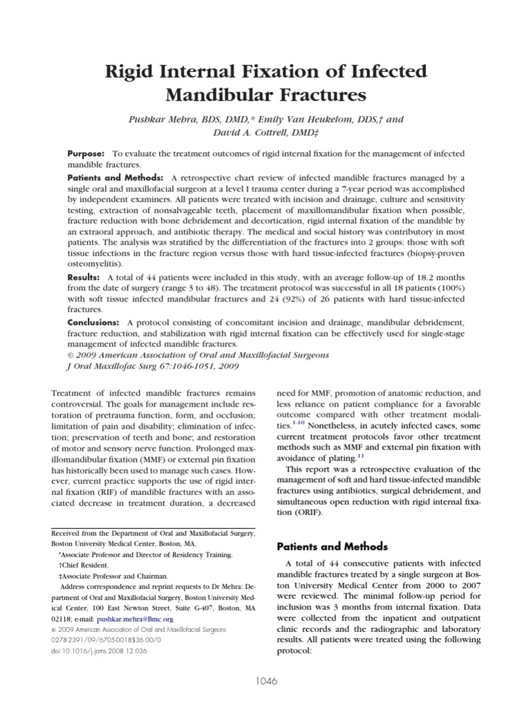 Rigid Internal Fixation of Infected Mandibular Fractures | PDF ...
