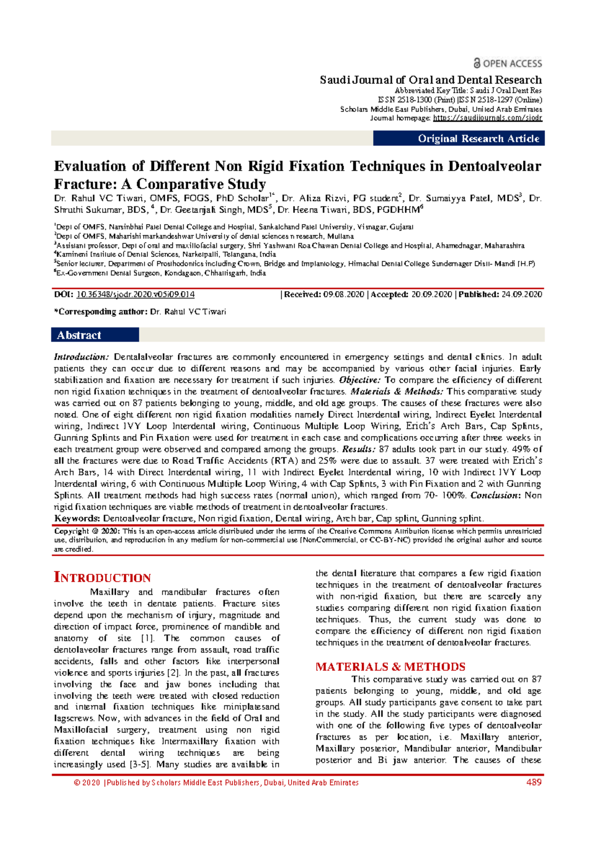 Comparative Study of Non-Rigid Fixation Techniques in Dentoalveolar ...