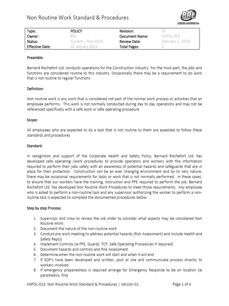 Non Routine Work Policy | Download Free PDF | Personal Protective ...