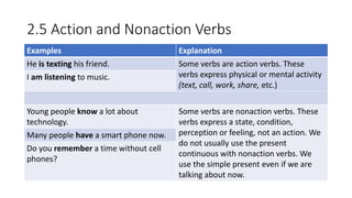 AEF 3 grammar simple present and continuous, action and nonaction verbs ...