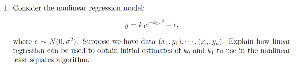 Solved 1. Consider the nonlinear regression model: 2 where | Chegg.com
