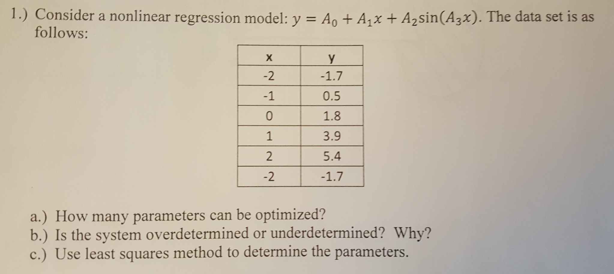 Solved Solve the following non-linear regression problem: | Chegg.com