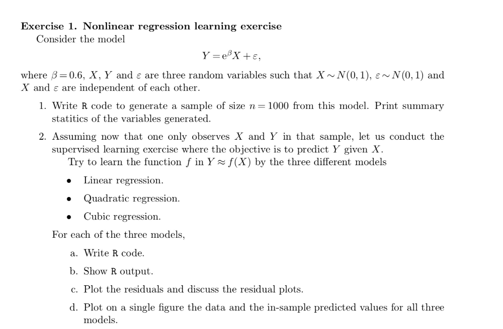 Solved Exercise 1. Nonlinear regression learning exercise | Chegg.com