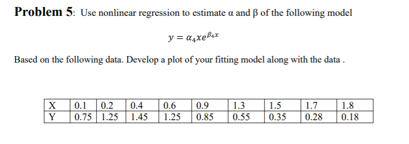 Solved Problem 5: Use nonlinear regression to estimate a and | Chegg.com
